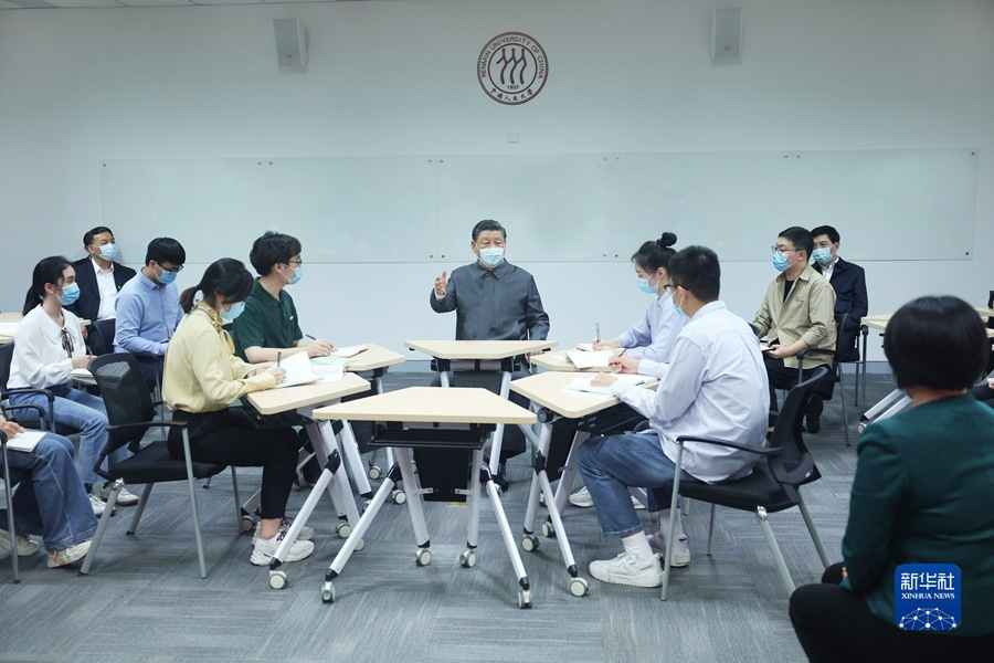 4月25日上午,中共中央總書記、國家主席、中央軍委主席習近平來到中國人民大學考察調研。這是習近平同師生代表座談并發表重要講話。新華社記者 謝環馳 攝